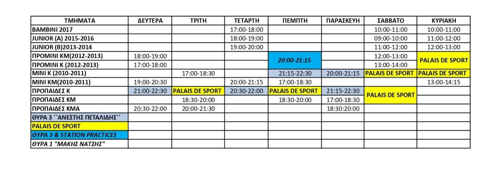 Η σωρεία εγγραφών στην «κιτρινόμαυρη κυψέλη» του μπάσκετ έφερε αλλαγές στο πρόγραμμα των προπονήσεων της Ακαδημίας, το οποίο μπορείτε να δείτε αναλυτικά παρακάτω.