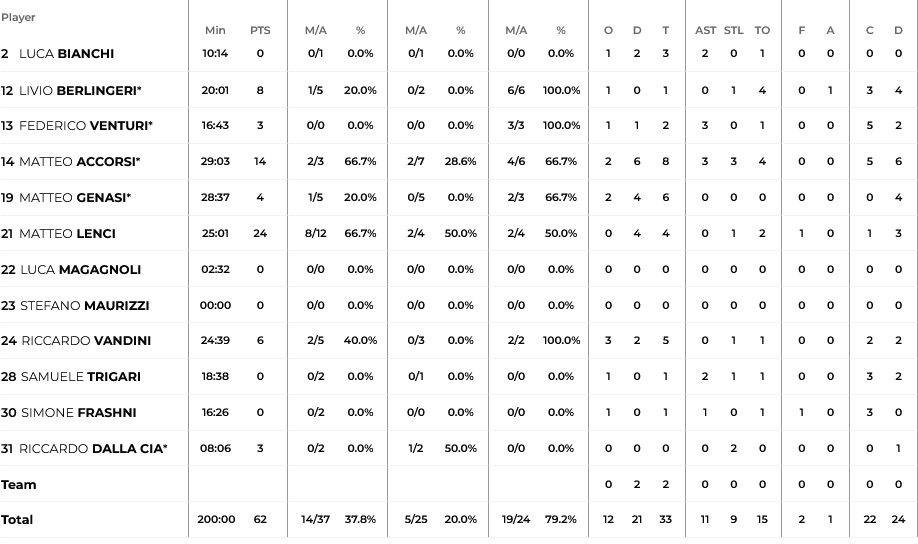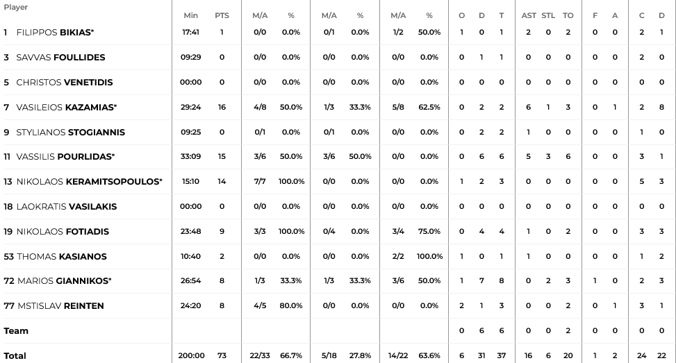 Τα δεκάλεπτα: 20-7, 37-25, 54-38, 73-62.